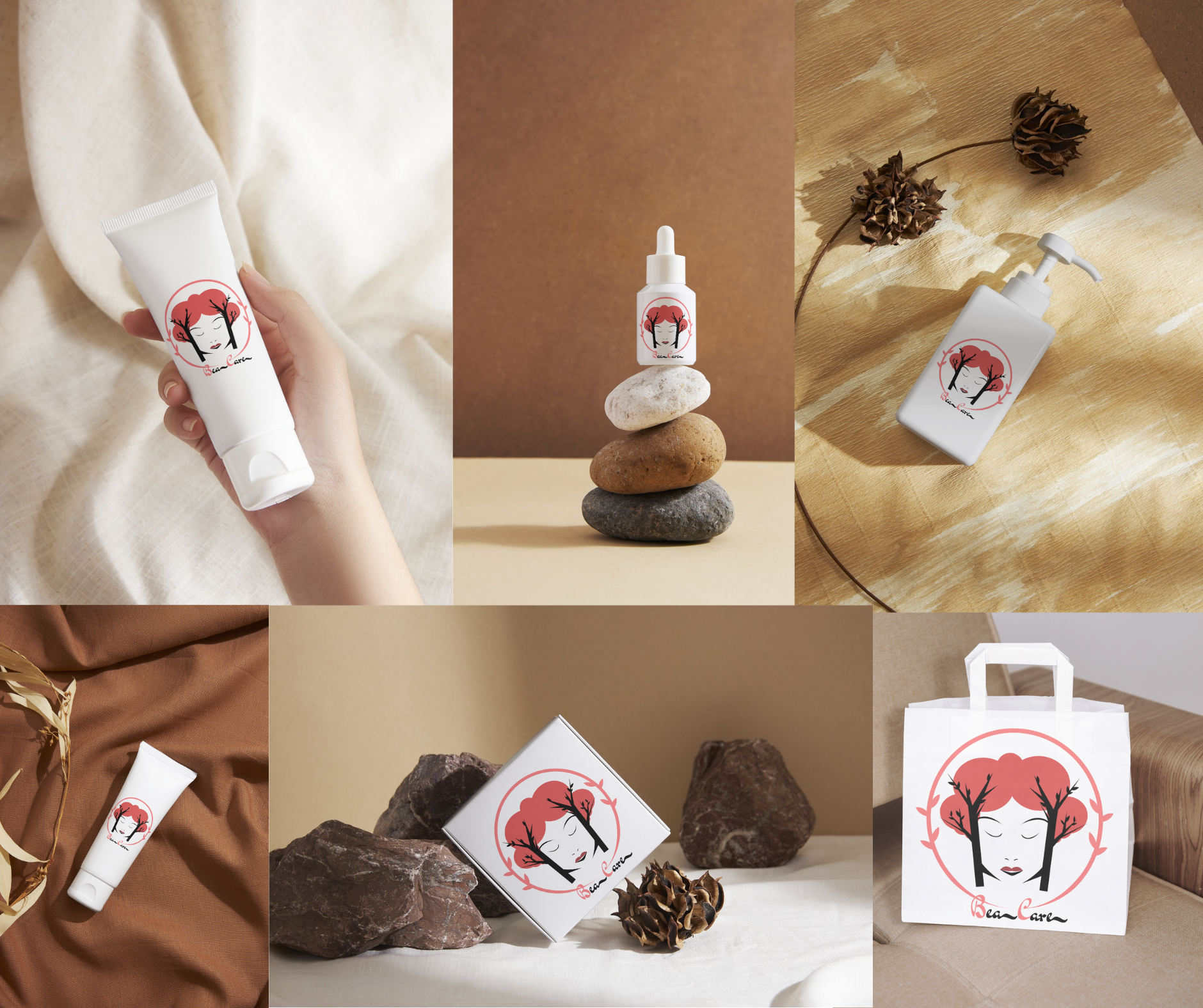 BeaCare is a conceptual skincare brand centered on the harmony between natural ingredients and gentle self-care. The logo features an elegant visual of trees forming the silhouette of a woman’s face, symbolizing the deep connection between nature and beauty. This imagery reflects the brand’s philosophy that healthy skin begins with pure, plant-based elements drawn from the earth.